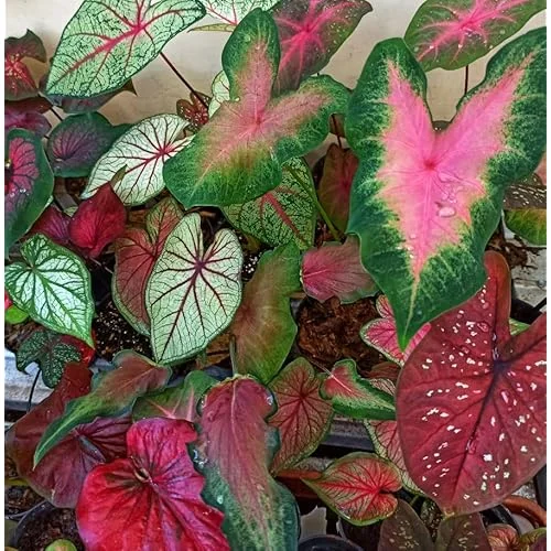 Transform your garden with 12 Caladium Seeds Bulbs for Planting, Mixed Color Caladium Bulbs Bulk Colorful Caladiums Seeds Tuber. These tropical perennials feature stunning, heart-shaped leaves in a variety of vibrant hues, bringing life and beauty to any space. Whether you’re planting them in garden beds, containers, or as indoor houseplants, caladium bulbs thrive in shaded areas, making them an excellent choice for low-light spots.