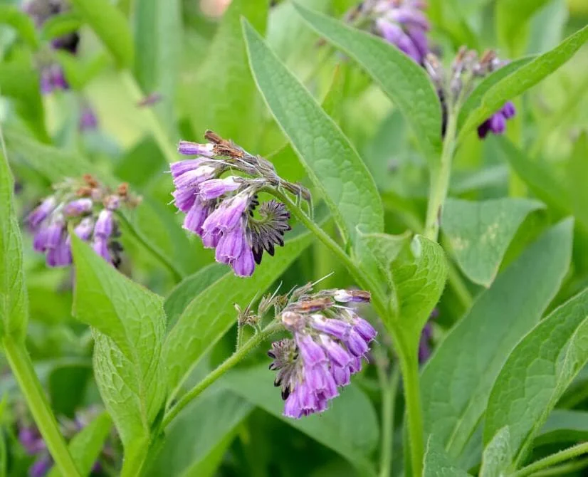 - Natural Soil Enrichment: Comfrey’s deep roots mine nutrients from deep within the soil, making them accessible to other shallow-rooted plants. Using its leaves as a ‘chop and drop’ mulch or in compost enriches your garden beds with vital minerals and nitrogen.