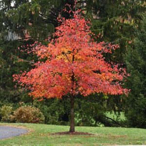 - Foliage: Deep green in summer, turning brilliant red, orange, and purple in fall