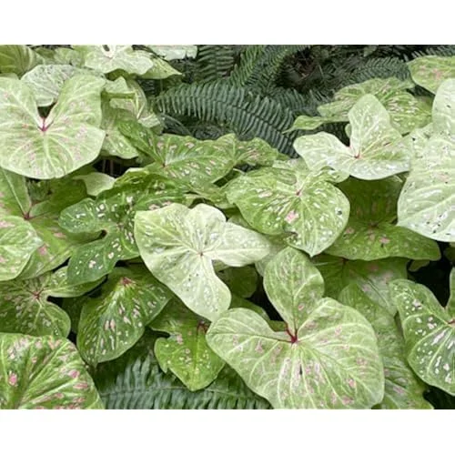 Enhance your garden with 2 Caladium Bulbs for Planting, Lime Caladium Bulbs Bulk Colorful Caladiums Tuber. These tropical perennials feature stunning, heart-shaped leaves with striking lime-green and colorful accents, making them an excellent choice for adding vibrant contrast to shaded areas. Perfect for container gardening, landscaping, and indoor houseplants, caladiums thrive in zones 3-11 and prefer full to partial shade.