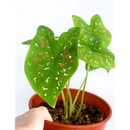 Enhance your garden with 2 Caladium Bulbs for Planting, Green Pink Red Tricolor Caladiums Tuber. These tropical perennials feature stunning, heart-shaped leaves in a beautiful combination of green, pink, and red. Ideal for shade gardens, container planting, or landscaping projects, caladiums thrive in warm temperatures and add a bold pop of color to any outdoor or indoor space.