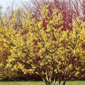 Enhance your garden with 2 Witch Hazel bare root seedlings (1-2 feet tall), a stunning deciduous shrub renowned for its brilliant fall-blooming yellow flowers and low-maintenance care. Hardy in USDA zones 5-8, this shrub grows up to 6 meters tall, forming a dense, multi-stemmed structure perfect for landscaping.