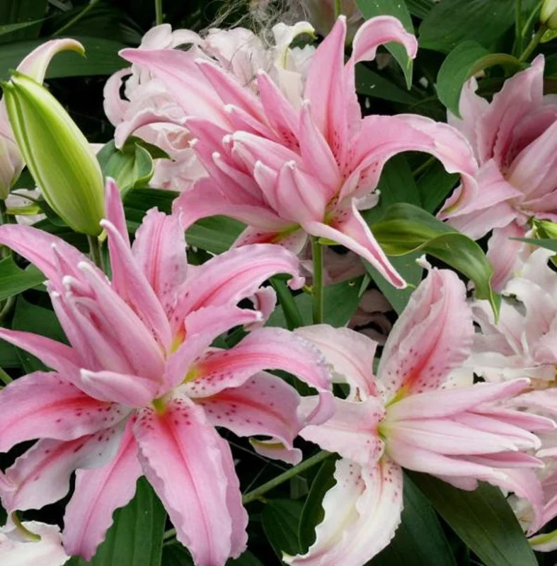 These stunning flowers are celebrated for their exquisite beauty and delightful fragrance. Characterized by their multiple layers of petals, they resemble roses or peonies, adding a touch of luxury to any garden. The Oriental Double Lilies come in a variety of colors, including white, pink, and red, often adorned with speckles or contrasting edges. Unlike single Oriental lilies, these double forms produce no pollen, making them ideal for indoor arrangements.