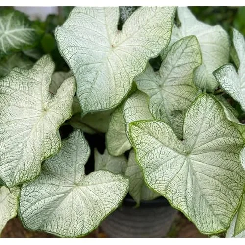 Transform your garden with 4 Caladium Bulbs for Planting, a perfect choice for adding vibrant foliage to shaded areas. These White Caladium Bulbs feature stunning, heart-shaped leaves with a delicate, elegant appearance. Ideal for zones 3-11, these Bulk Caladiums Tubers can be grown in containers, garden beds, and even indoors as houseplants.
