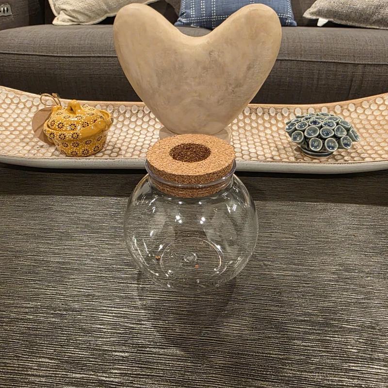 This round plastic terrarium measures approximately 4 inches in diameter, making it a compact and desk-friendly size that fits perfectly in various small spaces. The clear plastic construction ensures visibility of the root system, adding an engaging visual element to your decor. The terrarium includes a precisely fitted cork lid with a central opening for holding plant cuttings and a matching cork coaster to protect surfaces. It is designed specifically for water propagation and is suitable for small plant cuttings, herbs, and air plants. This item is sold as the vase, cork lid, and cork coaster only; live plants are not included.