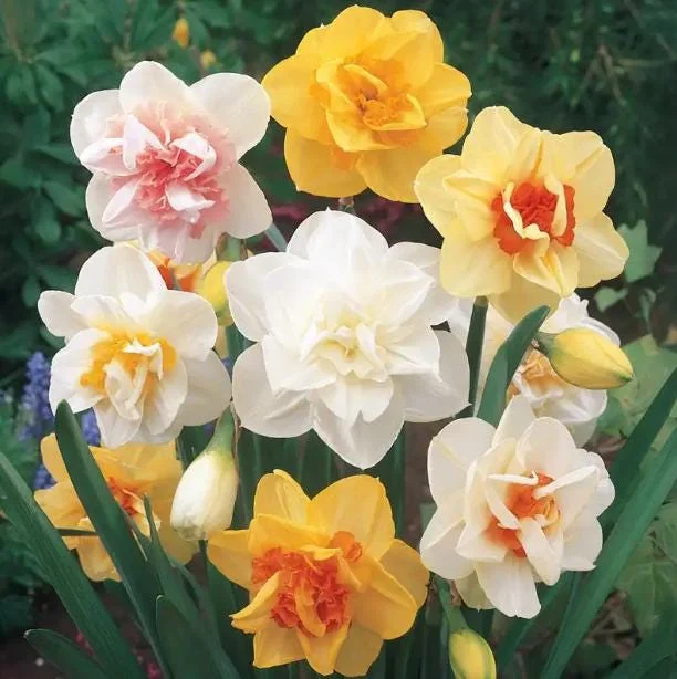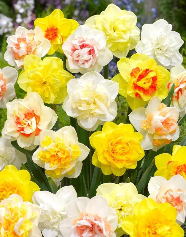 - Q: When can I expect these double daffodil bulbs to bloom? A: These mixed daffodil varieties typically bloom in early to mid-spring, following the earliest spring flowers. The exact timing can vary slightly depending on your local climate and planting conditions.