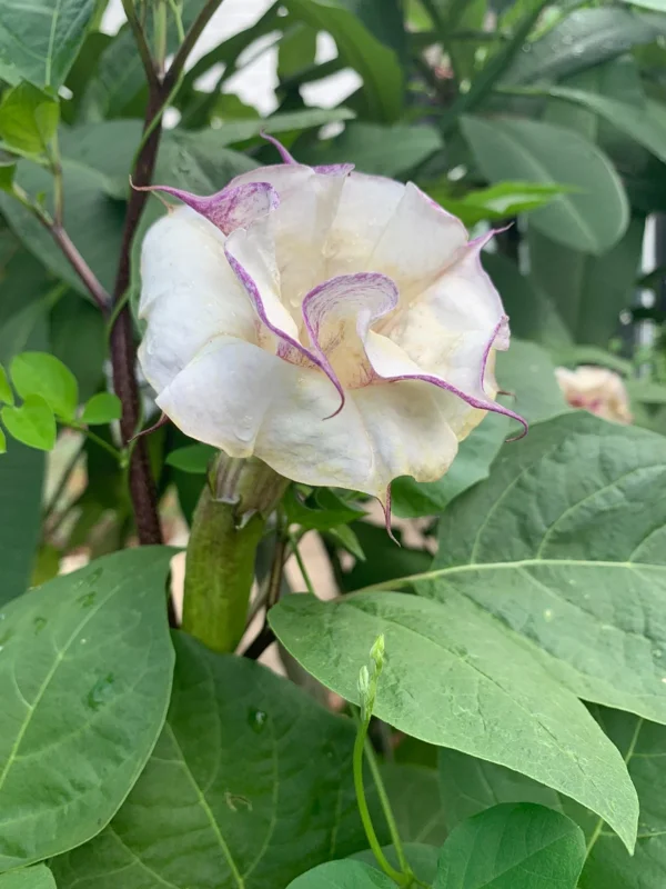 Fertilize your Datura plants regularly during their blooming period with a balanced liquid fertilizer to encourage continuous flowering. Deadheading spent blooms can also promote more flowers. While generally easy to grow, keep an eye out for common garden pests like aphids or spider mites, and treat them promptly with organic pest control methods if necessary. With proper care, your bi-color trumpet flower plants will flourish, offering a spectacular display of purple and white all season long.