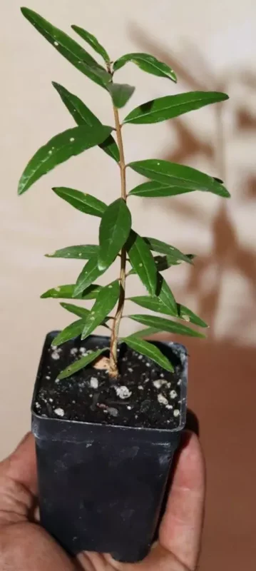 At 9″ tall, this pomegranate seedling is ready for planting in your home garden. Housed in a standard 2.5 x 3″ nursery pot, planting and establishment are a breeze. Whether you’re interested in growing fresh pomegranates or adding a stunning ornamental plant to your collection, the Wonderful Pomegranate Seedling delivers both beauty and function. Pomegranates are a delicious and healthy treat.