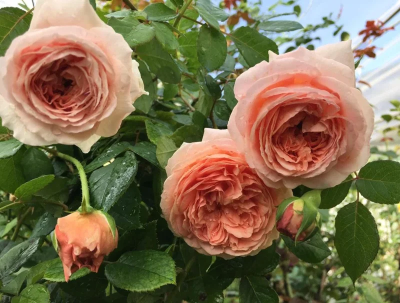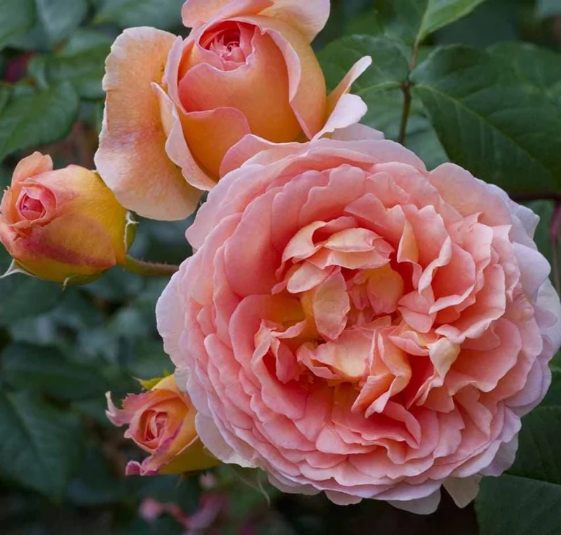 Abraham Darby is a classic English rose celebrated for its very large, deeply cupped blooms in rich apricot, peach, and soft pink tones. The flowers have a strong, fruity fragrance with hints of citrus and rose