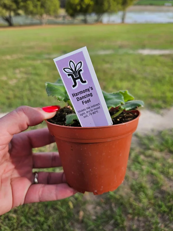 - Q: How long until my ‘Harmony’s Dancing Fool’ blooms? A: As a pre-finished starter, your plant may already have buds or be close to blooming. With proper African Violet care, you can expect consistent blooms throughout the year, often within weeks of arrival.