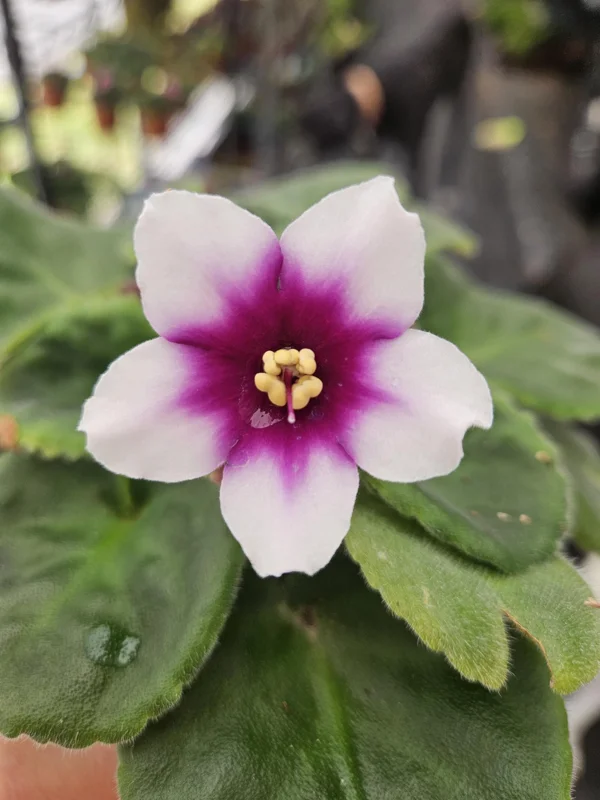 African Violets are beloved by plant enthusiasts worldwide for their diverse flower colors, from rich purples and blues to soft pinks and whites, often with contrasting edges or variegated leaves. This blooming African Violet offers a delightful visual experience, showcasing its vibrant petals and lush green leaves. Whether you’re a beginner or an experienced plant parent, this charming plant is sure to brighten your home and bring a sense of tranquility.