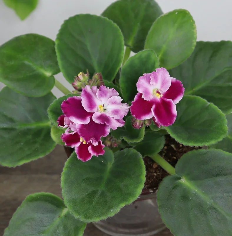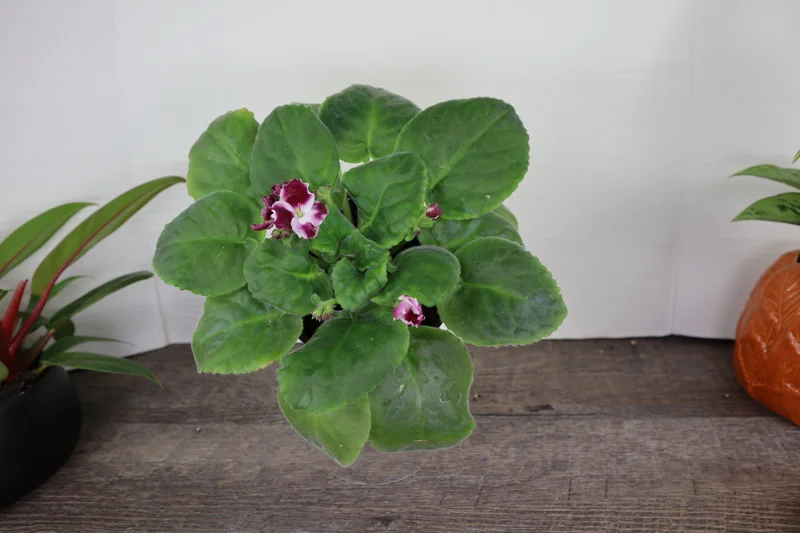 The botanical name for the African Violet is Saintpaulia, a genus celebrated for its diverse range of flower colors and leaf patterns. The ‘Holly’ variety stands out with its bicolor blossoms, presenting a sophisticated and eye-catching display. This African Violet live plant thrives indoors, making it a perfect choice for adding natural vibrancy to living rooms, bedrooms, or even office desks. Its relatively small size ensures it fits comfortably in various settings, bringing life and serenity wherever it’s placed. Experience the joy of a perpetually blooming companion with this easy-to-care-for and visually appealing houseplant.