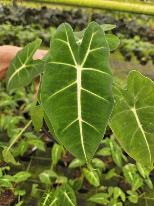 - Q: How big does this Alocasia Frydek live plant get? A: The Alocasia Frydek live plant typically grows to a height of 1 to 3 feet and can have a similar spread when mature. Individual leaves can reach lengths of 8 to 12 inches, creating a dramatic display.