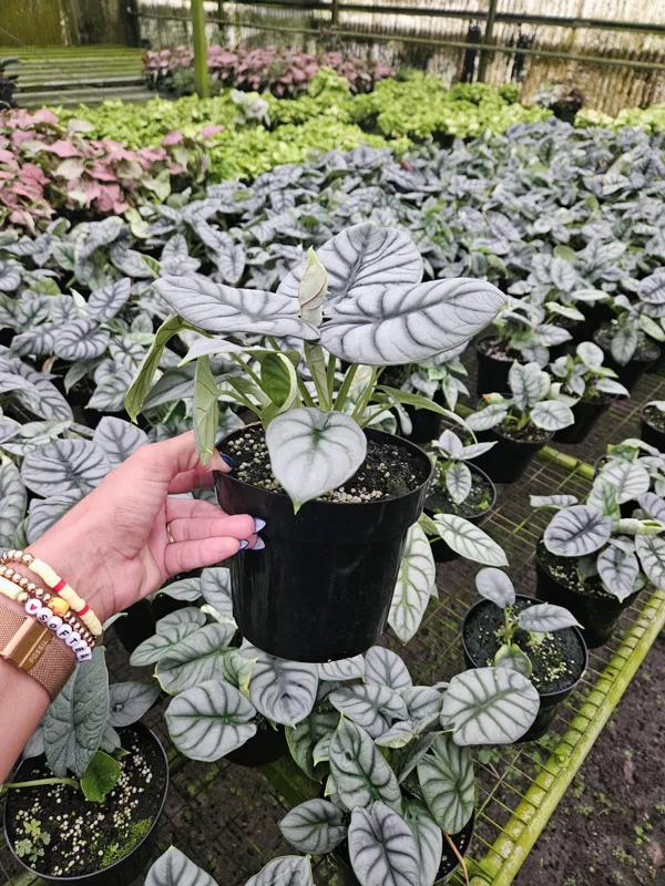 - Unique Foliage Texture: The distinct, almost scaly texture of the leaves sets the ‘Silver Dragon’ apart from other Alocasias and houseplants. This tactile quality adds another dimension to its decorative value.