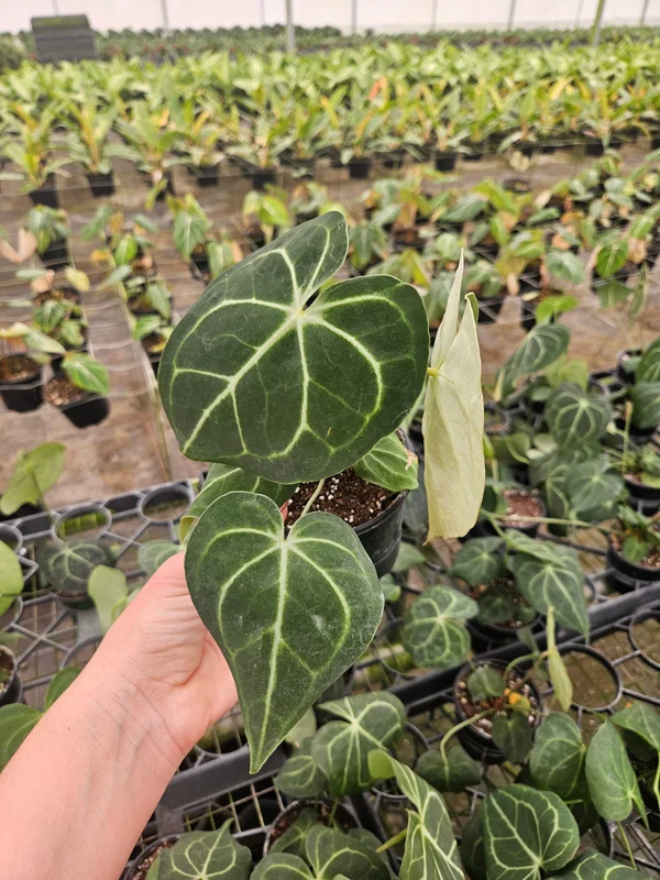 - Q: How much sunlight does it need? A: This velvet leaf anthurium thrives in bright, indirect light. Avoid direct sunlight, which can scorch its leaves. A spot near an east or north-facing window is ideal.