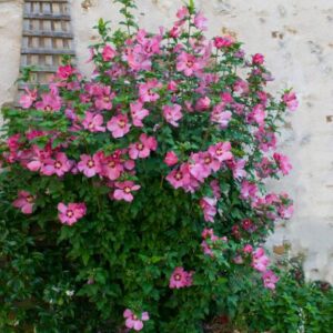 Aphrodite Rose of Sharon Althea (Hibiscus syriacus) is a beautiful deciduous flowering shrub that brings elegance to any garden. This fast-growing plant produces eye-catching pink blooms with a deep red center, attracting butterflies, bees, and hummingbirds. It thrives in full sun to partial shade and is perfect for USDA Zones 6-9.