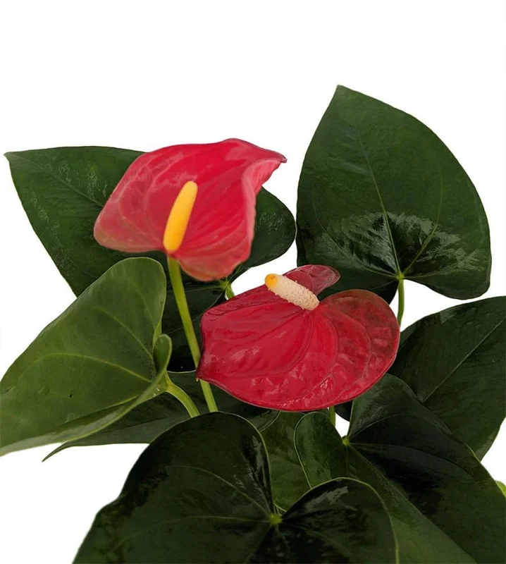 The Bambino Red Anthurium Houseplant brings elegance and vibrancy into any indoor space. Known for its prolific and early blooming nature, this plant consistently flowers throughout the year. Its distinctive heart-shaped red blooms mature beautifully, adding a touch of the tropics to your home or office. Compact yet versatile, the Bambino Red Anthurium thrives in pots ranging from 2 inches to 8 inches in diameter, adapting easily to your preferred display style.