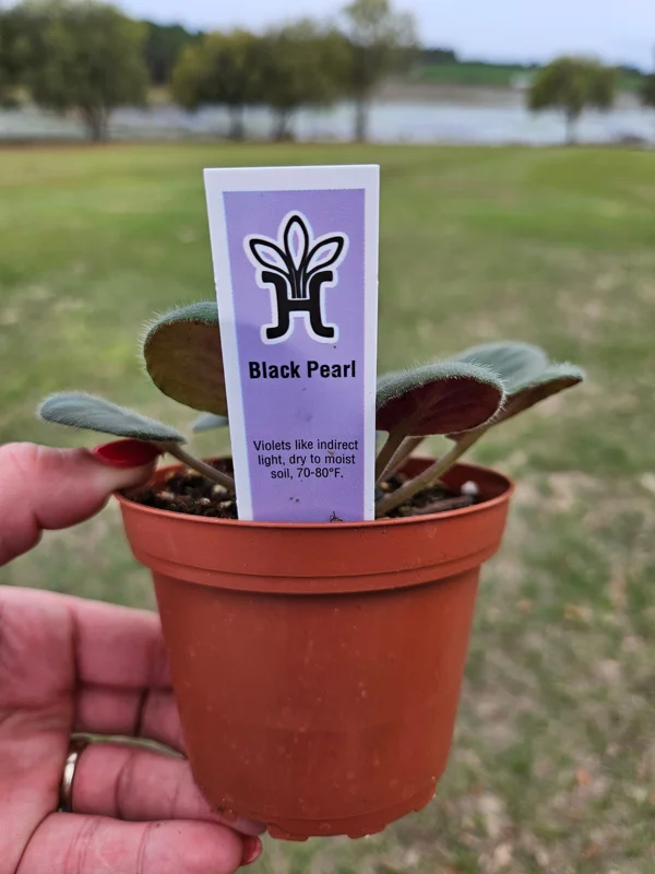 - Q: How big does this Black Pearl African Violet get? A: This specific offering is for a young, pre-finished starter in a 4 inch pot. When mature, the Black Pearl African Violet live plant typically grows to a compact size, usually between 6 to 12 inches in diameter, making it ideal for various indoor settings.