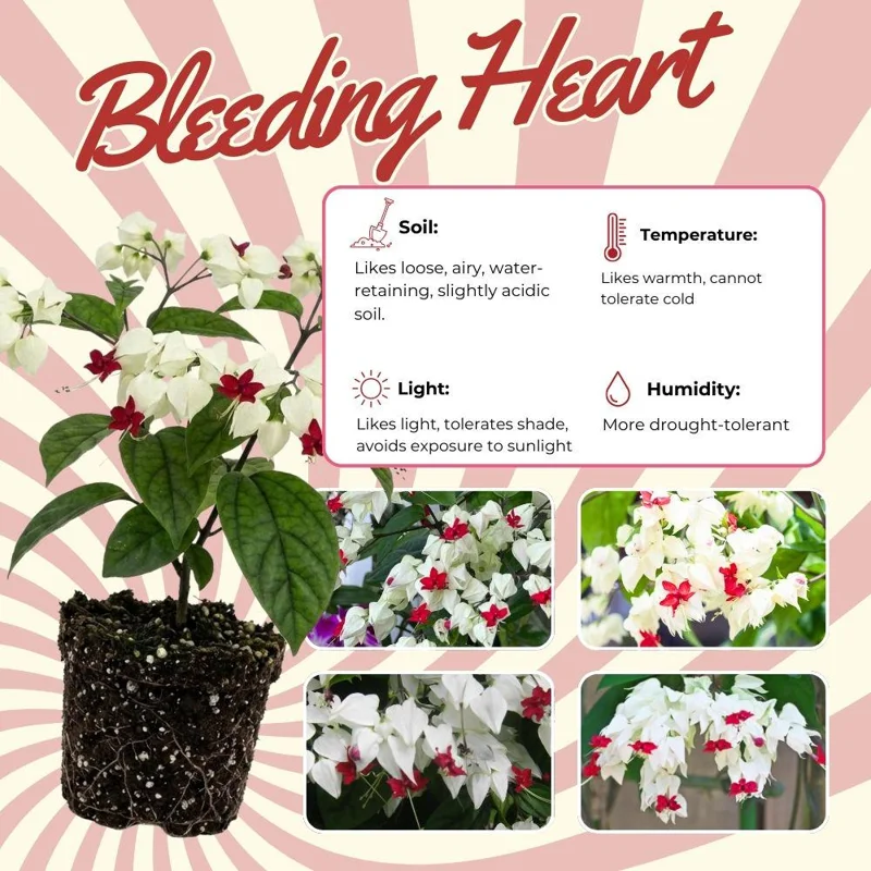 Caring for your bleeding heart live plant, or White Clerodendrum, is straightforward, ensuring a beautiful display with proper attention. This plant thrives in specific conditions that allow its delicate blooms to flourish. Understanding its needs for light, water, and soil will guarantee a healthy and vibrant vine.