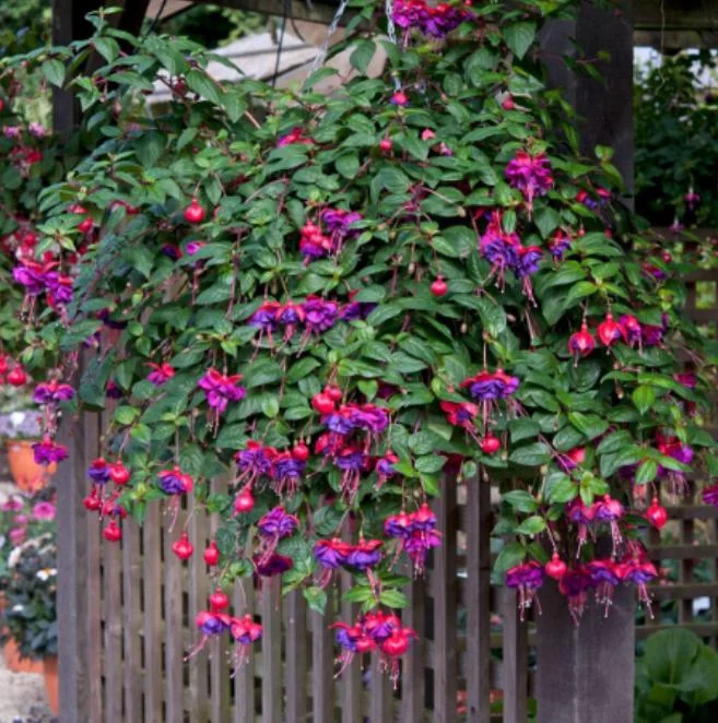 - Dramatic Cascading Blooms: Enjoy a continuous display of graceful, dangling purple and white bi-color flowers that create a spectacular waterfall effect, perfect for visual interest. The unique coloration of the fuchsia hybrid plant is truly eye-catching.