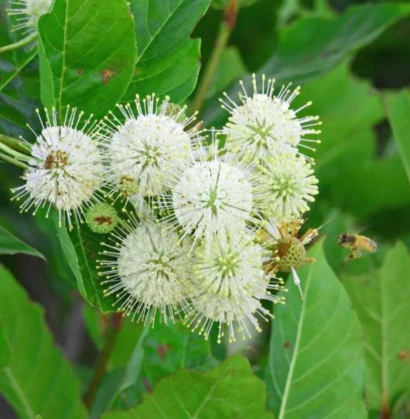 - Attracts Pollinators: The spherical white flowers of the button bush plant are incredibly fragrant and act as a powerful magnet for butterflies, bees, and hummingbirds, enriching your garden’s biodiversity.
