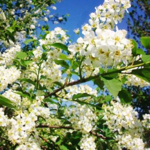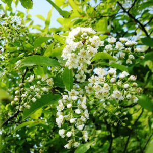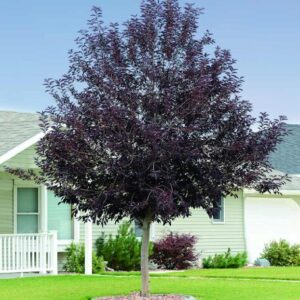 This ornamental tree is known for its deep red foliage, which emerges green in spring before transitioning into striking burgundy hues in summer. In late spring, it produces clusters of fragrant white flowers, attracting pollinators like bees and butterflies. These blooms give way to dark red to black fruits, known as chokecherries, which are high in antioxidants and can be used to make jams, jellies, and syrups.