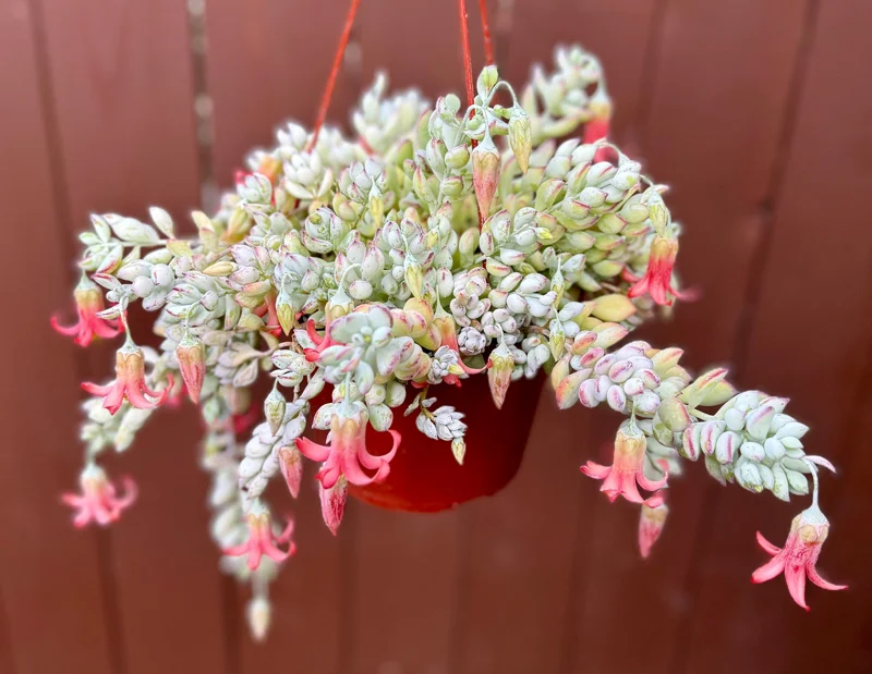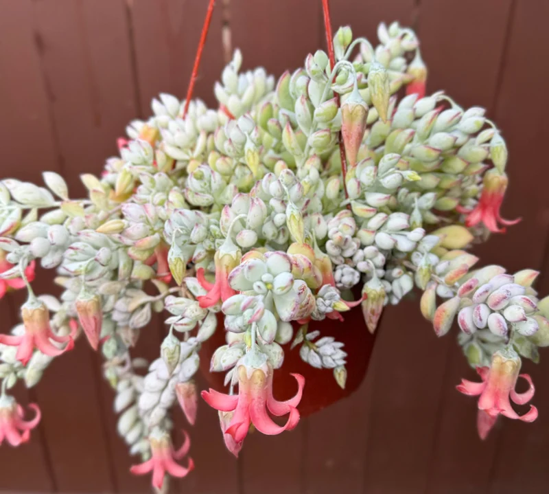 Its moderate growth rate means it will gradually fill out its container, creating a dense, cascading display. Expect to see significant trailing development within the first year with proper care. This succulent is an excellent choice for adding a dynamic element to your plant collection, offering continuous growth and vibrant coloration throughout the year, especially when given bright light to enhance its signature pink succulent hues.