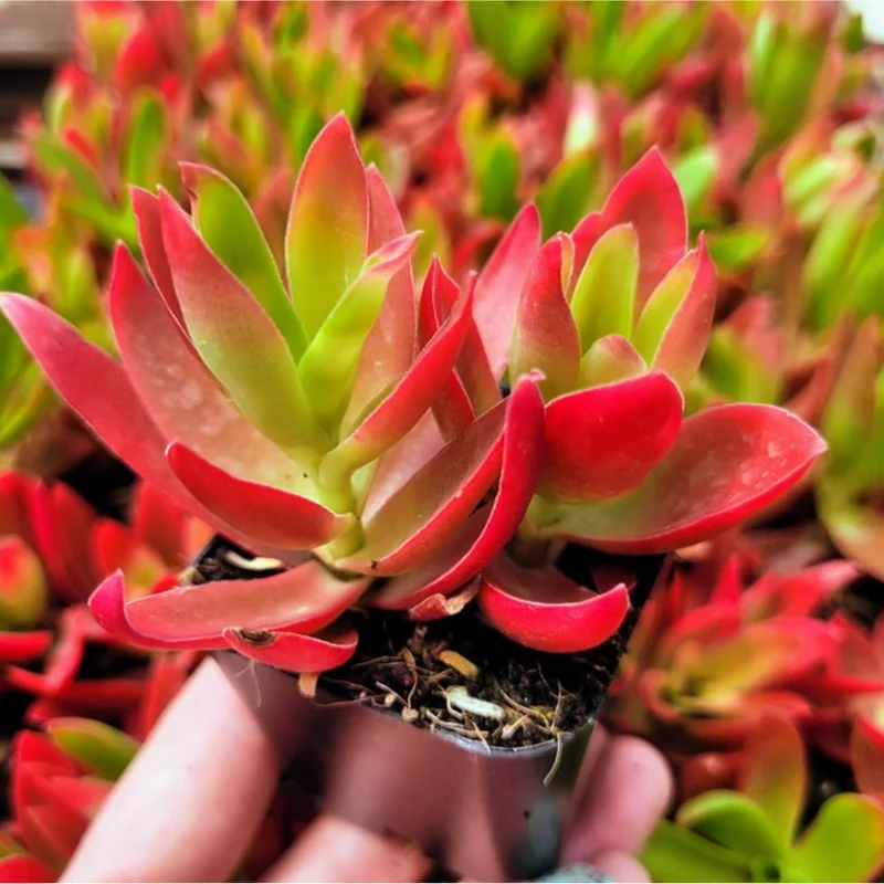 This particular offering is for a 2-inch potted specimen, ideal for adding immediate charm to small spaces or integrating into larger succulent arrangements. Whether you’re looking to brighten up a desk, windowsill, or a patio, the Crassula ‘Campfire’ brings a touch of the exotic with its vibrant display. Its adaptability to various environments, both indoors and out, further enhances its appeal, allowing you to enjoy its beauty wherever you choose.
