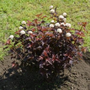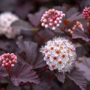 - Color: Deep burgundy foliage with white flower clusters
