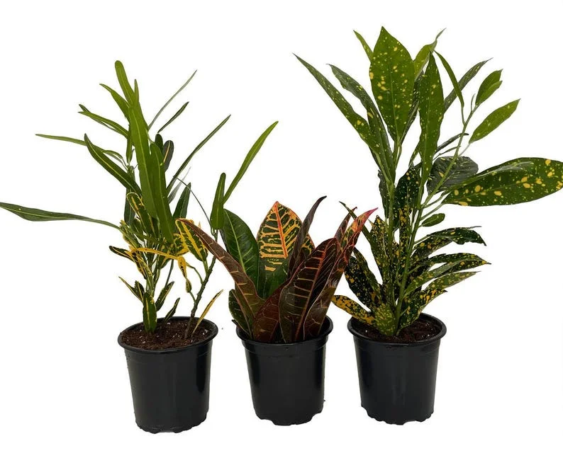 Croton Plant Assortment – 3 Live Shrubs in 4-Inch Pots, Vibrant Foliage