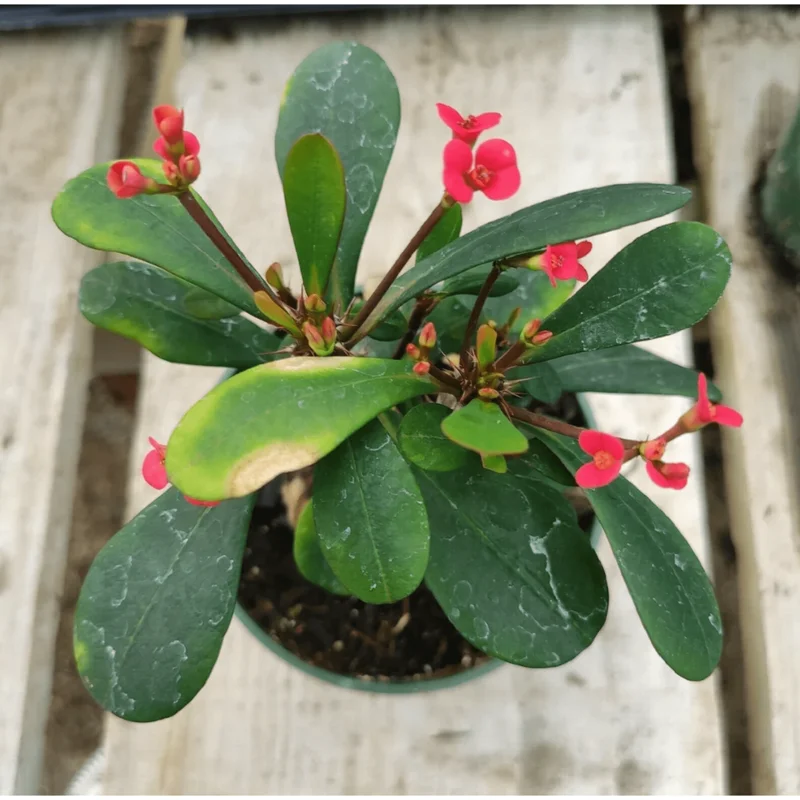 - Continuous Blooms: Unlike many plants, the Crown of Thorns live plant can produce its vibrant red bracts throughout the year, providing consistent color and beauty to your surroundings. These long-lasting ‘flowers’ add a cheerful touch to any season.