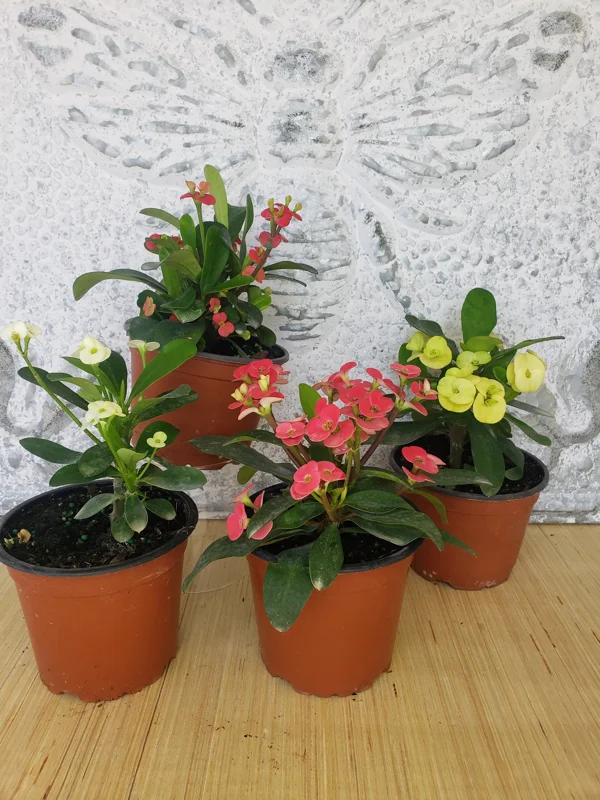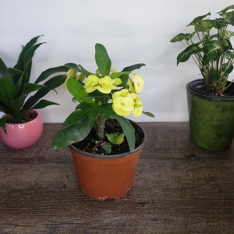 Caring for your Crown of Thorns live plant is straightforward, making it a great option for both novices and experienced gardeners. This resilient Euphorbia milii yellow thrives with proper light, water, and soil conditions, ensuring a long life of beautiful blooms.