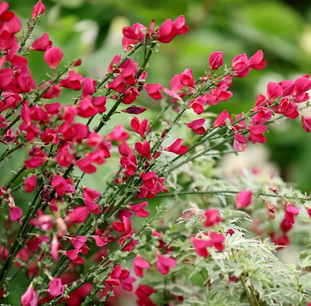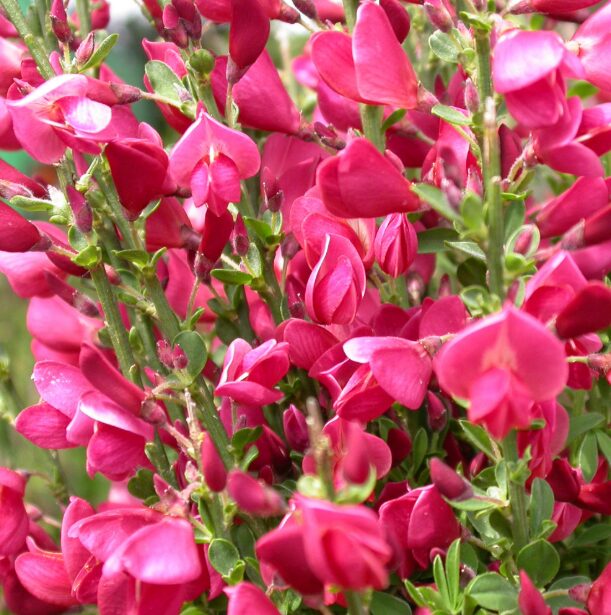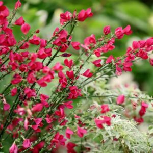 Cytisus ‘Boskoop Ruby’ is a hardy deciduous shrub known for its stunning crimson flowers and fragrant blooms. This noninvasive variety of Scotch Broom grows to 3-4 feet tall, making it an excellent choice for landscaping, borders, and pollinator-friendly gardens.