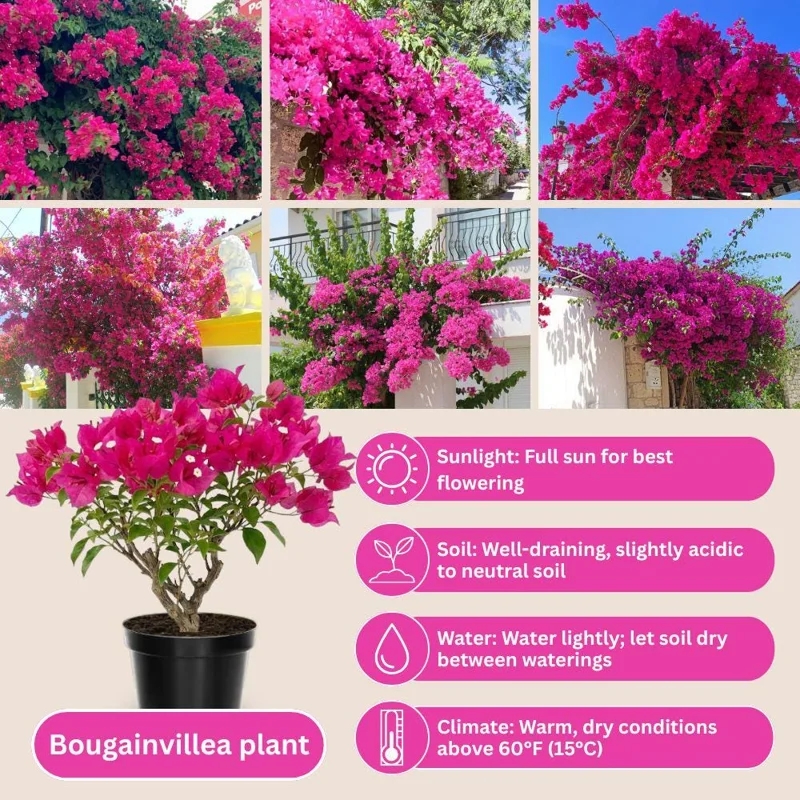- Ideal for containers and patios: This bougainvillea thrives as a bougainvillea for containers, making it perfect for patios, balconies, and other confined spaces. When grown in pots, it can be easily moved to protect it from frost or to rearrange your garden layout, providing flexibility in design.