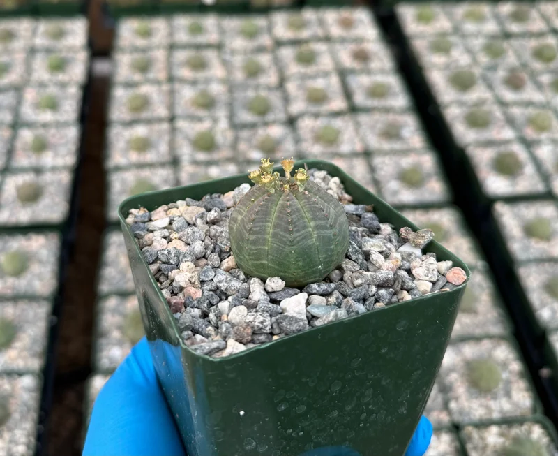 Q: Does the Euphorbia obesa produce flowers? A: Yes, the Euphorbia obesa live plant is dioecious, meaning individual plants are either male or female and produce small, greenish-yellow flowers. However, it is primarily admired for its unique spherical form.
