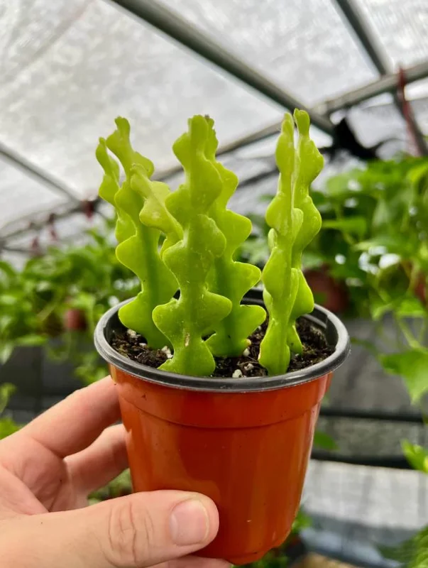 Introduce a touch of exotic elegance to your indoor garden with the stunning fishbone cactus live plant. This unique tropical houseplant, also known as the zigzag cactus or ric rac cactus, is prized for its extraordinary foliage. Its long, flattened stems feature deep, wavy indentations, creating a captivating fishbone or zigzag pattern that is unlike any other plant. Originating from the rainforests of Mexico, this epiphytic cactus thrives in conditions similar to orchids, clinging to trees in its natural habitat. Our young, developing plant arrives approximately 8 inches tall in a 3.5-inch nursery pot, ready to become a focal point in your collection. It’s an ideal choice for both seasoned plant enthusiasts and beginners looking for a distinctive and relatively low-maintenance addition to their living space.