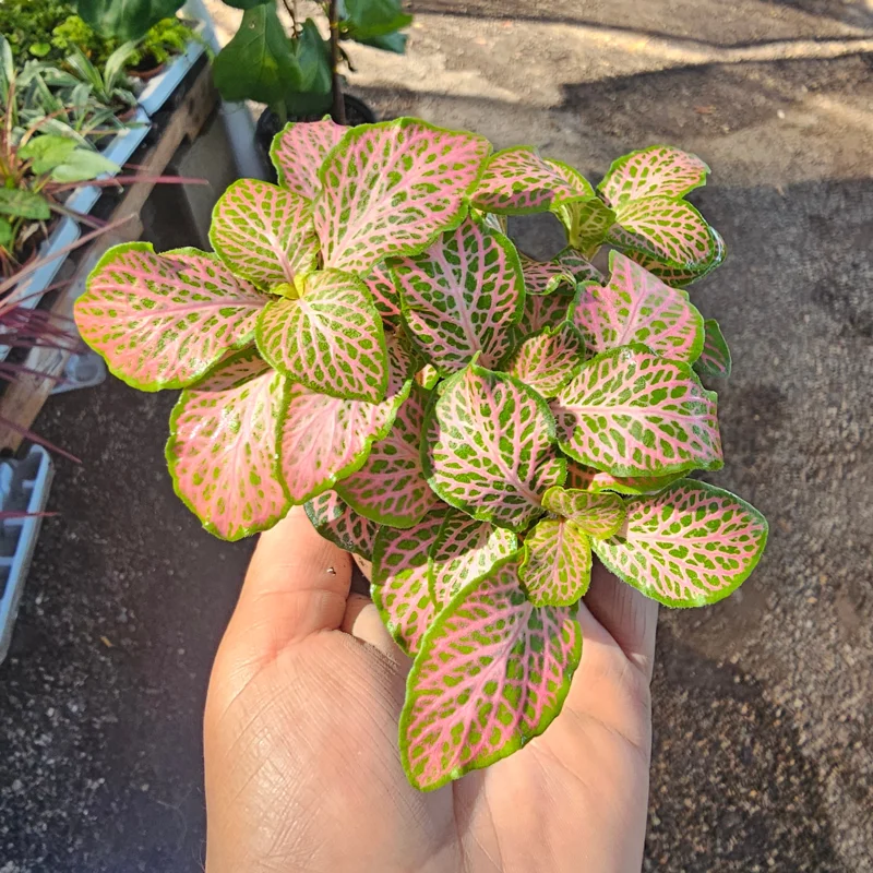 Introduce a burst of color and unique texture to your indoor garden with the stunning Fittonia Ruby Lime live plant. Also known as the Nerve Plant or Mosaic Plant, Fittonia verschaffeltii ‘Ruby Lime’ is celebrated for its intricate, vein-like patterns that crisscross its vibrant green leaves, accented with brilliant ruby-red or pink. This particular cultivar offers a dazzling display of deep red and bright lime green, creating a visual masterpiece in a compact form. Originating from the tropical rainforests of South America, Fittonia thrives in conditions that mimic its natural habitat, making it an ideal candidate for terrariums or humid indoor spaces. As a small, bushy houseplant, it remains relatively low-growing, typically not exceeding 6 inches in height, making it perfect for tabletops, shelves, or as part of a mixed plant arrangement. Its distinctive foliage ensures it stands out, offering continuous visual interest without the need for flowers. If you’re looking for a captivating and colorful addition to your collection, the Fittonia Ruby Lime live plant is an excellent choice.
