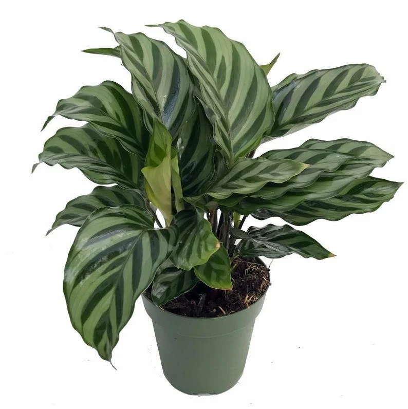 The Freddie Peacock Calathea is a stunning tropical indoor plant celebrated for its vibrant green foliage adorned with bold, feathery dark veins. This easy-care houseplant is an excellent addition to any home décor, thriving in medium to low light conditions and adding elegance and life to living rooms, bedrooms, or office spaces. Its beautiful burgundy-purple underside leaves provide extra charm, making each plant a living work of art. A true showstopper that elevates any indoor space with its unique beauty.