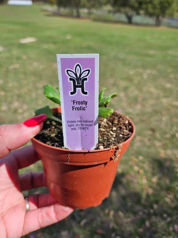 - Q: What size pot does it come in? A: Each Frosty Frolic African Violet live plant is shipped in a 4 inch nursery pot, providing a good foundation for its initial growth in your home.