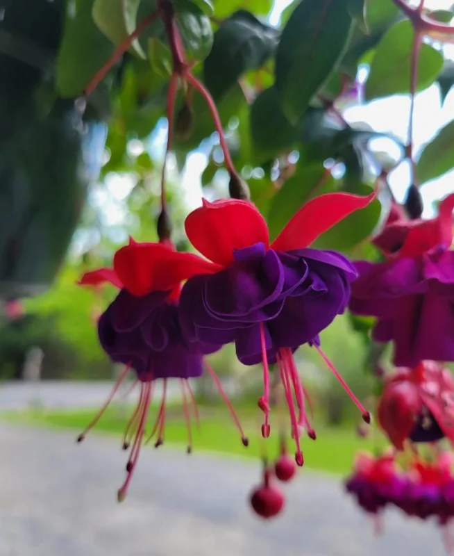 The ‘Maori Maid’ is celebrated for its robust growth and prolific flowering, ensuring a long season of enjoyment. This particular hardy fuchsia flower is a gardener’s delight, providing a lush, full appearance wherever it’s planted. Its unique color combination and trailing form make it stand out, drawing attention and admiration. It’s not just a plant; it’s a living piece of art that brings dynamic color and movement to your garden design.