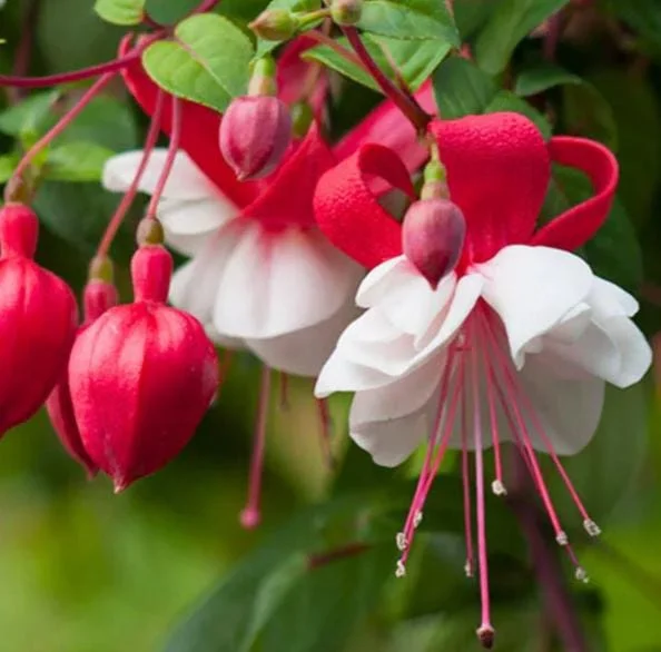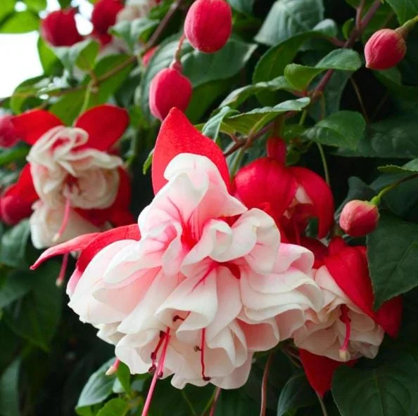 - Stunning Aesthetic Appeal: The elegant double flowers with soft pink sepals and creamy white to pale blush corollas create a breathtaking display, making it a focal point in any garden. This white-red fuchsia flower adds a touch of classic beauty.