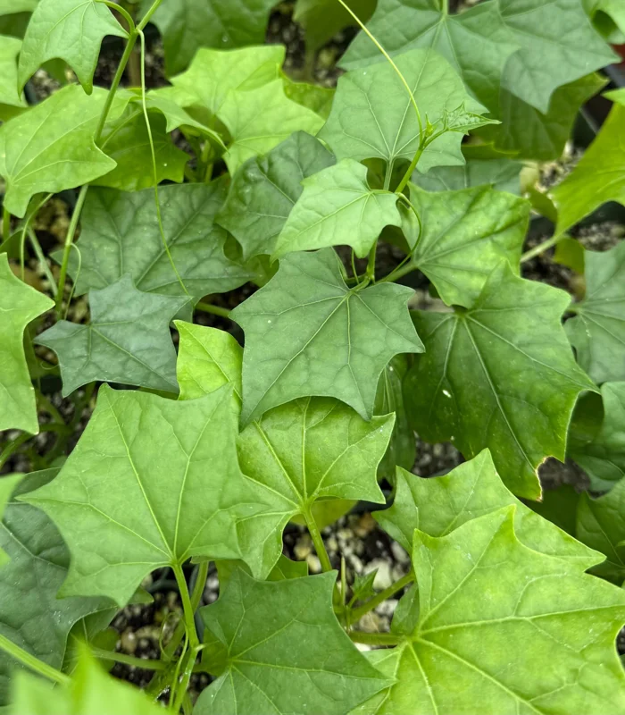 The Gerrardanthus Macrorhizus caudex plant is a remarkable and highly sought-after succulent, prized for its extraordinary appearance. Native to Southern Africa, this caudiciform plant is often affectionately called the Bigfoot plant for sale due to its prominent, swollen base, which serves as a natural water reservoir. This unique bulbous structure sits above the soil, creating a sculptural focal point that makes it a favorite among succulent enthusiasts and collectors of unusual plants. From the top of this impressive caudex, slender green vines gracefully emerge, capable of trailing or climbing with appropriate support. These vines are adorned with charming heart-shaped leaves, providing a delicate contrast to the plant’s robust base. As a live plant, it offers both aesthetic appeal and a fascinating glimpse into the adaptations of desert flora, making it a compelling addition to any plant collection.