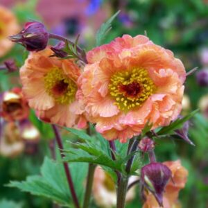 Geum ‘Mai Tai’ is a stunning hardy perennial that brings elegance to any garden with its semi-double ruffled apricot blooms. Flowering from spring through summer, this plant produces delicate blossoms atop 18-inch stems, making it an excellent choice for cut flower arrangements. The compact growth habit and long-lasting flowers ensure continuous beauty in flower beds, borders, and container gardens.