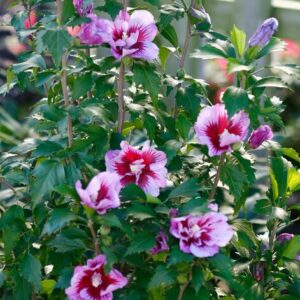 During the summer months, this hibiscus produces striking red and dark pink blooms, adding a bold visual impact to gardens, patios, and landscapes. Its nectar-rich flowers attract hummingbirds and butterflies, making it a perfect addition to pollinator-friendly gardens. The vibrant colors and the plant’s ability to attract wildlife make it a favorite among gardeners looking to enhance their outdoor spaces.