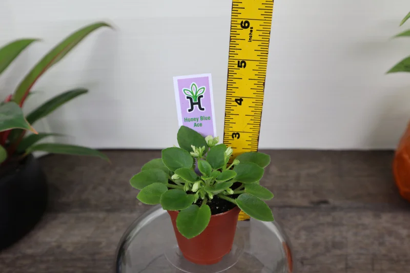 - Q: How big does this mini African violet get? A: The ‘Honey Blue Ace’ is a miniature variety, typically remaining compact with a leaf span of around 4-6 inches (10-15 cm) when mature, making it ideal for small spaces.
