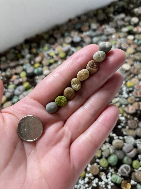 - A: We select a variety of Lithops to provide a diverse mix of colors and patterns, but we cannot guarantee a specific assortment.