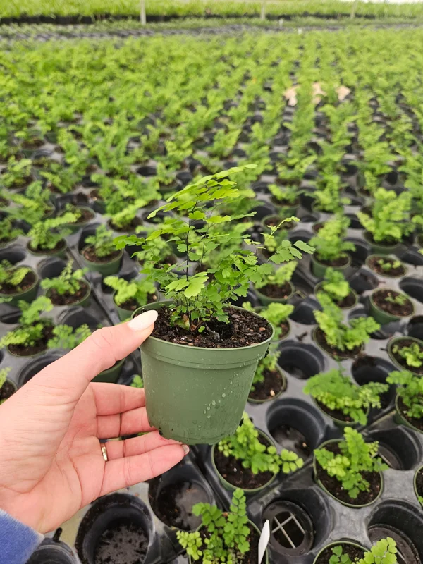 Soil Type & Drainage: A rich, well-draining potting mix is essential for the Maidenhair Fritz Fern live plant. A mix formulated for ferns or African violets, typically composed of peat moss, perlite, and a bit of sand or vermiculite, works well. Good drainage is crucial to prevent root rot, so ensure your 4 inch pot has drainage holes. Repotting should be done when the plant becomes root-bound, usually every 1-2 years, into a slightly larger pot.