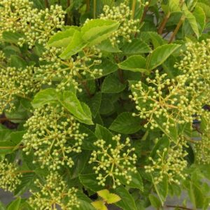 The Native Arrowwood ‘Chicago Lustre’ Viburnum is a vigorous, multi-stemmed shrub known for its lush, glossy green foliage and upright growth habit. This low-maintenance plant thrives in USDA zones 4-7, adapting well to full sun and partial shade. With a mature height of 10-12 feet and a spread of 8-10 feet, it’s an excellent choice for privacy screens, hedges, and natural landscapes.