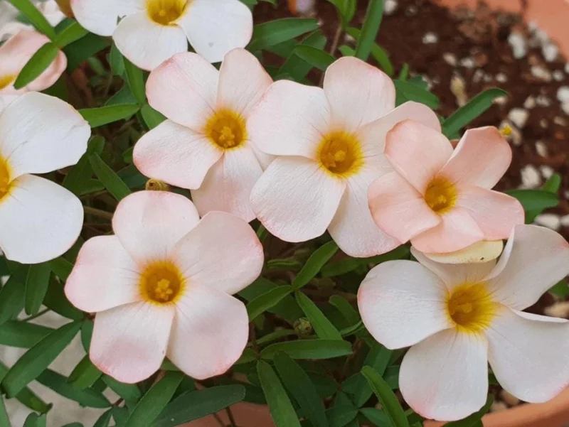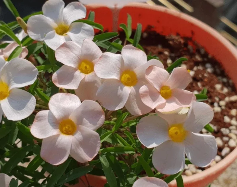 - Abundant, Elegant Blooms: This oxalis is renowned for its extremely heavy flowering, producing an abundance of pure white, five-petaled flowers with bright yellow centers that often bloom in large, impressive clusters.