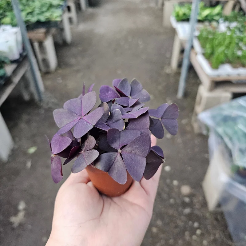 - Q: What size pot does it come in? A: This purple shamrock plant is available in two convenient sizes: a 2-inch pot and a 4-inch pot, allowing you to select the best fit for your space and immediate planting needs.